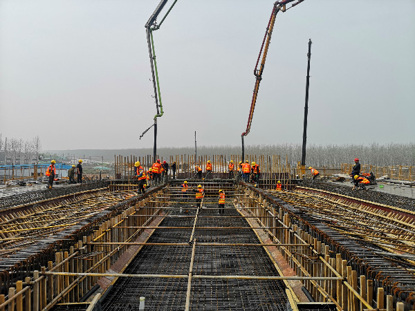 近日,匯通公司承建的沭陽快速路二期工程義烏路--慈溪路上跨橋37號(hào)墩柱混凝土開始澆筑。義烏路—慈溪路上跨橋全長(zhǎng)1406.9米,共13聯(lián),主線橋現(xiàn)澆等高箱梁(橋?qū)?5.5米)橋墩采用雙柱式“花瓶”形,中部系梁連接。37號(hào)墩柱模板安裝冬季混凝土施工質(zhì)量控制難度大、高空作業(yè)安全風(fēng)險(xiǎn)系數(shù)高。為順利完成第一根墩柱施工,項(xiàng)目部在施工前做了精細(xì)的施工準(zhǔn)備,制定周密的質(zhì)量控制措施,確保施工作業(yè)平臺(tái)安全穩(wěn)固。施工過程中,技術(shù)、質(zhì)檢、材料、安全部門人員全部到位,確保施工過程安全、材料供給及時(shí)、質(zhì)量達(dá)到要求。在各部門的密切配合下,37號(hào)墩柱順利完成澆筑。37號(hào)墩柱混凝土澆筑后續(xù)施工中,項(xiàng)目部將繼續(xù)保持工作熱情,保證